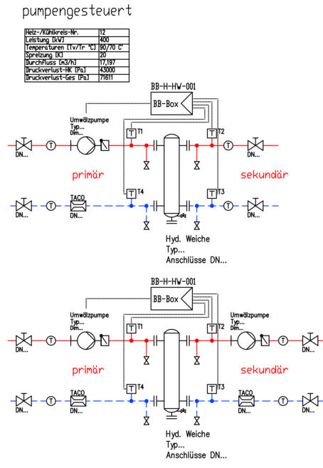 primäre Rücklauftemperatur (Versorgung) der sekundären Rücklauftemperatur